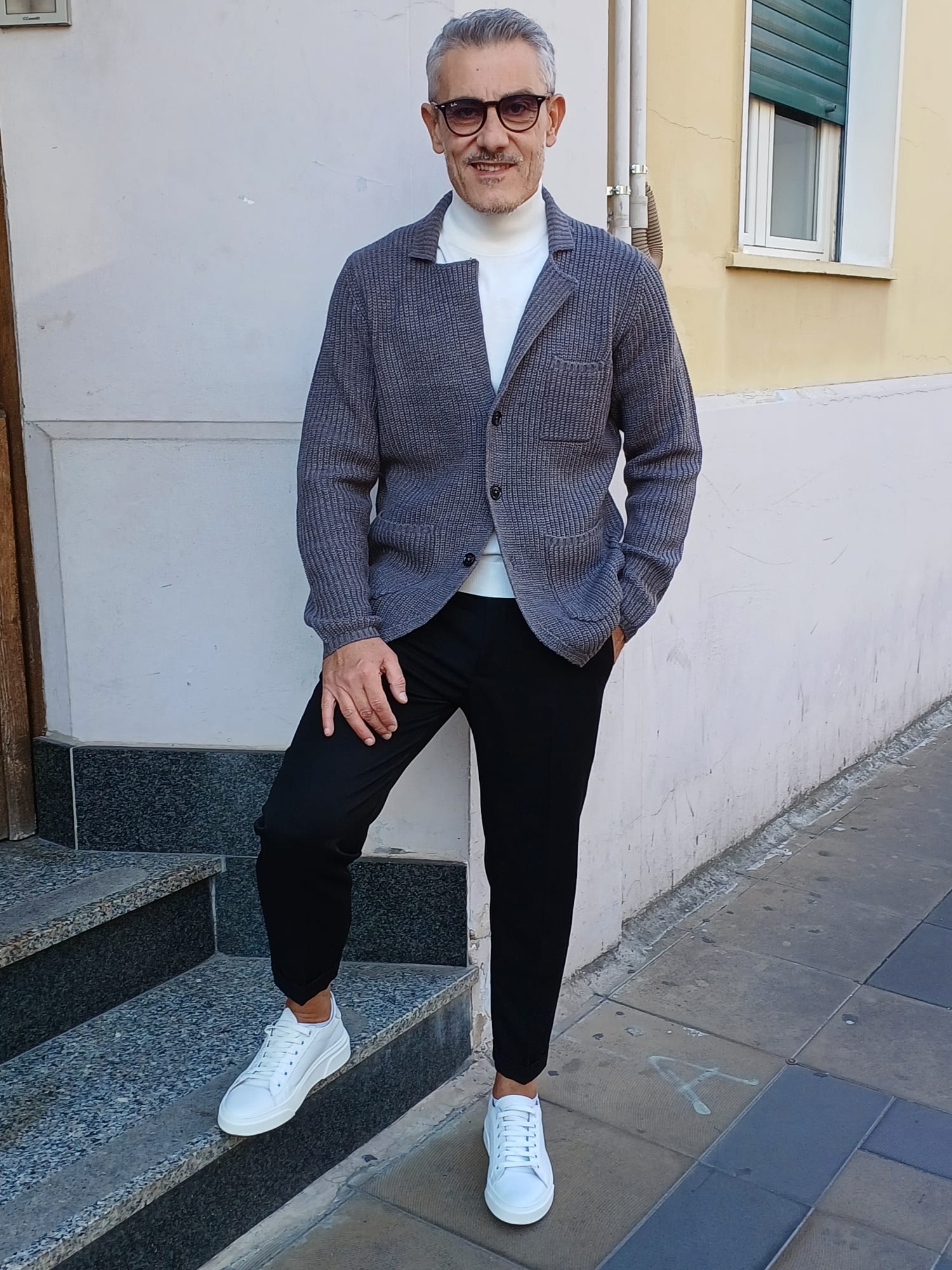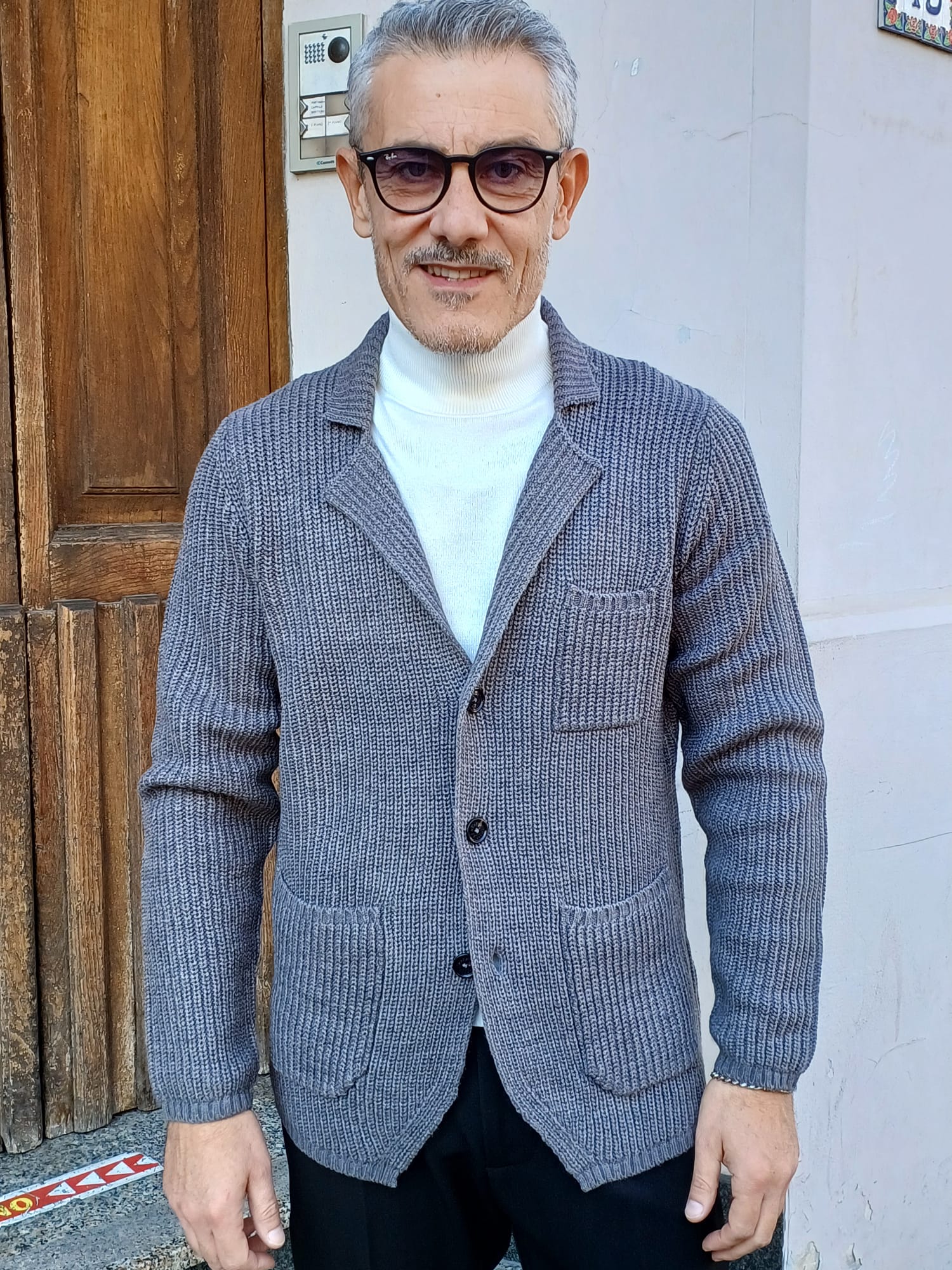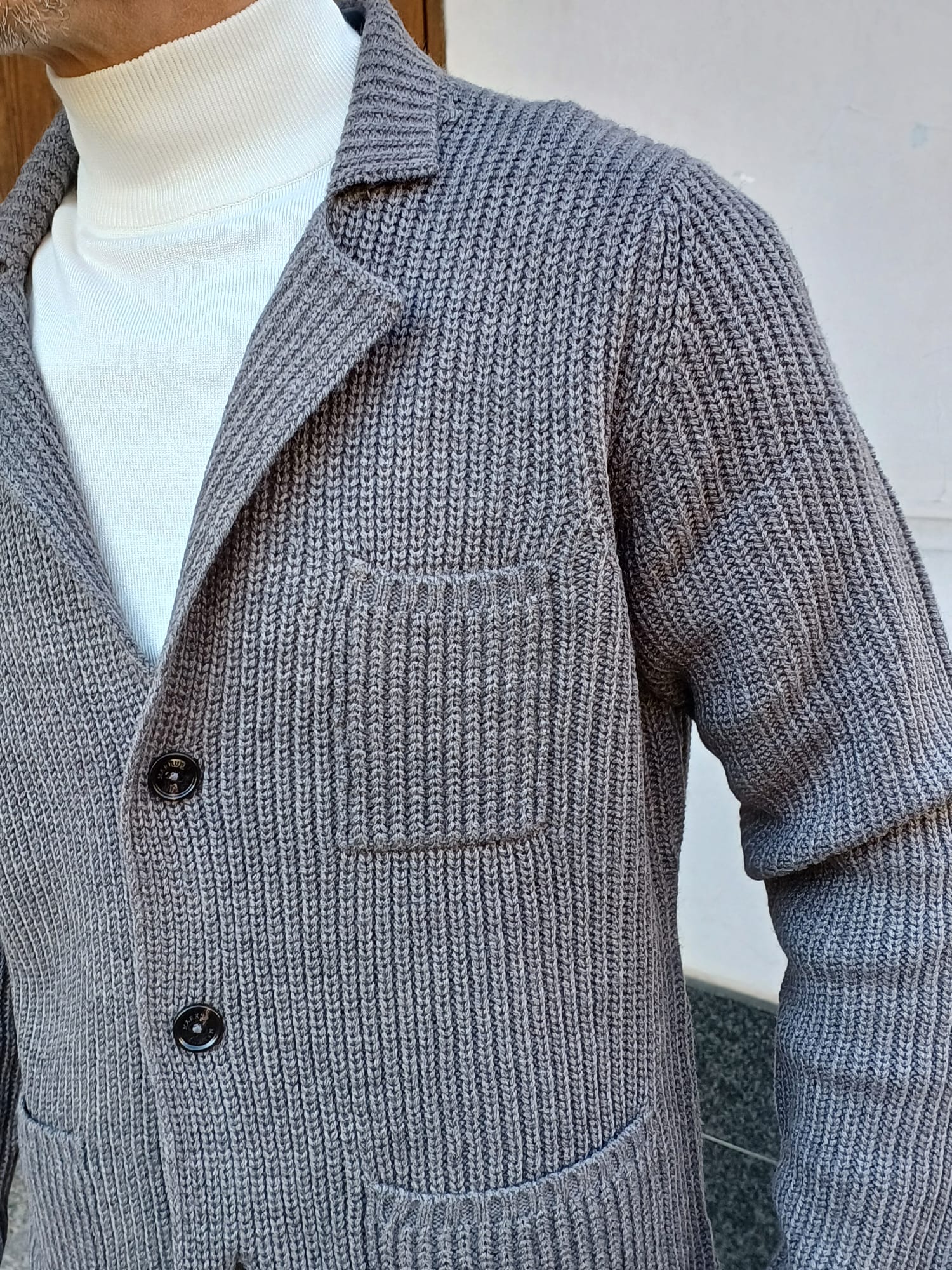 -Giacca in maglia a coste, perfetto per un look casual ma curato. Caratterizzato da colletto a revers, chiusura con tre bottoni frontali e tre tasche applicate (due laterali e una sul petto), unisce stile e praticità realizzato in tessuto caldo e morbido. Da indossare con una t-shirt o maglia a collo alto.