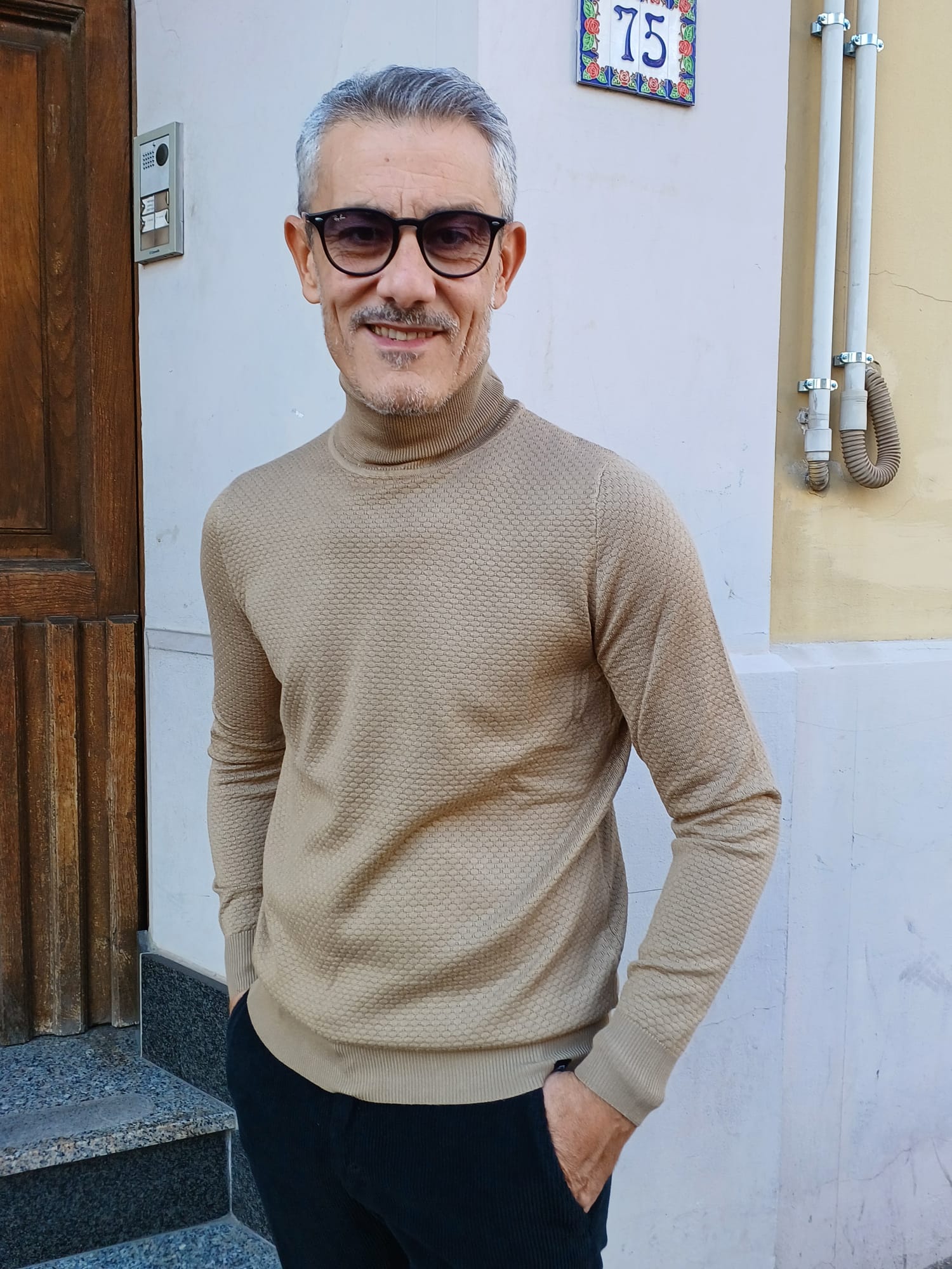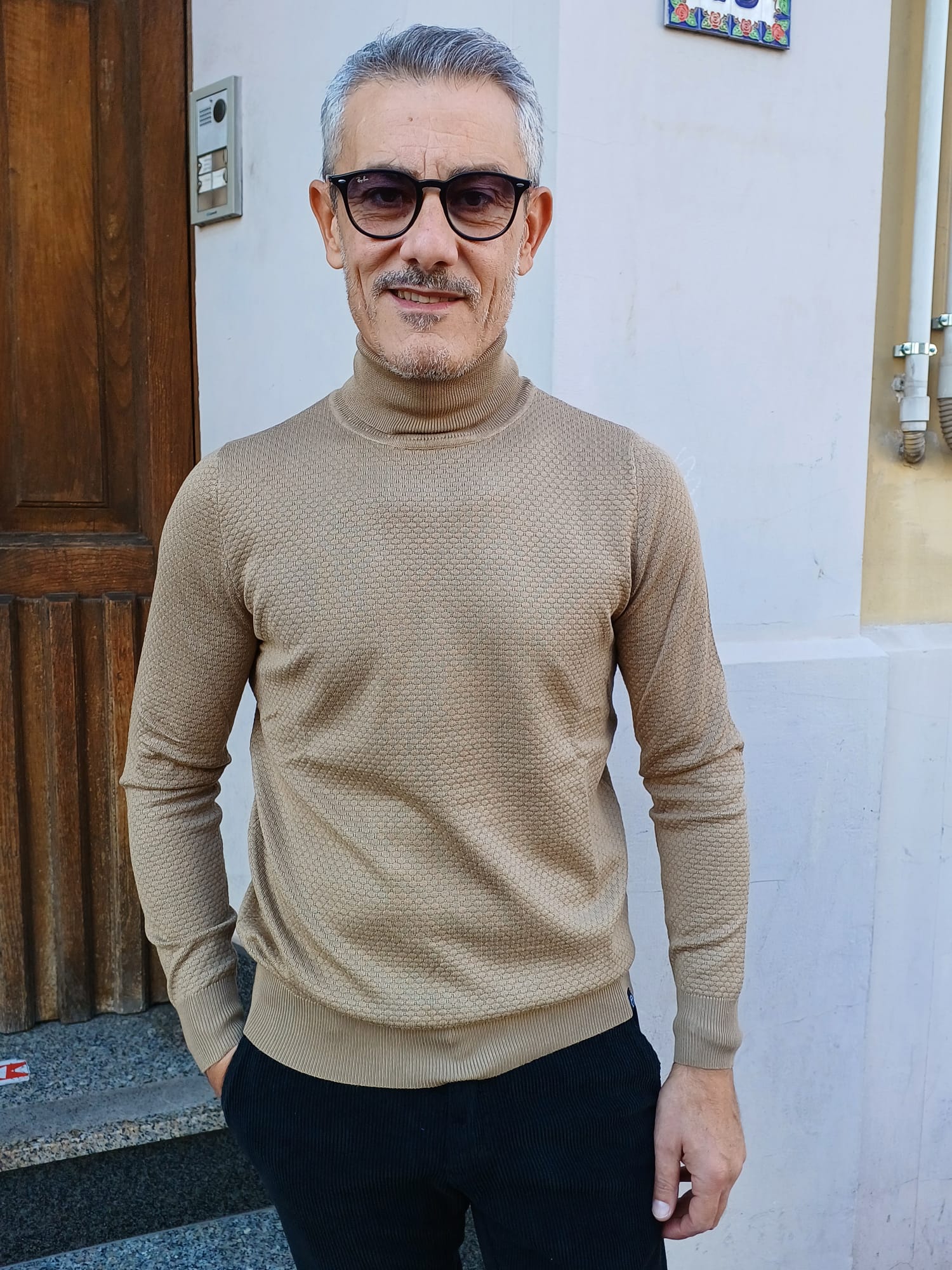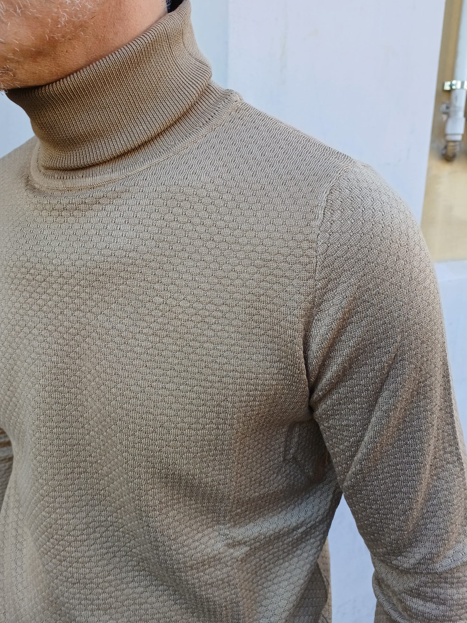 -Maglia unito collo alto con lavorazione a intarsio -Vestibilità regolare  -Il modello alto 1,76 - kg75   indossa taglia M  -Tessuto 65% viscosa 25% modal 10% elastane