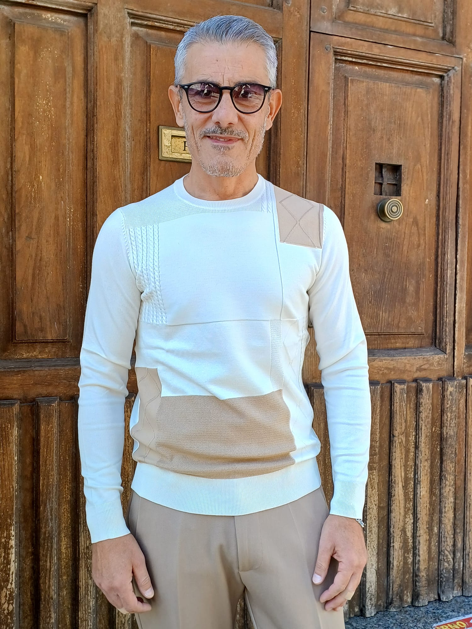 MAGLIA GIROCOLLO CON PATCHWORK MARKUP