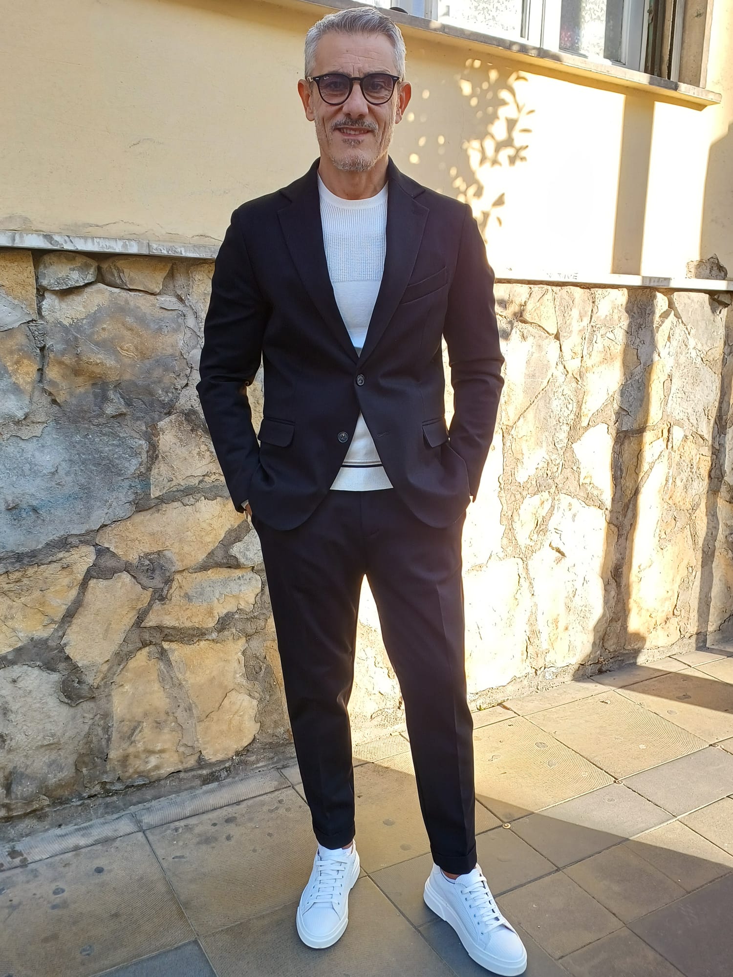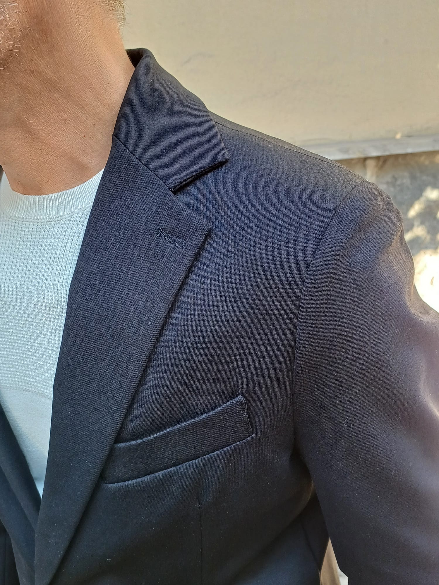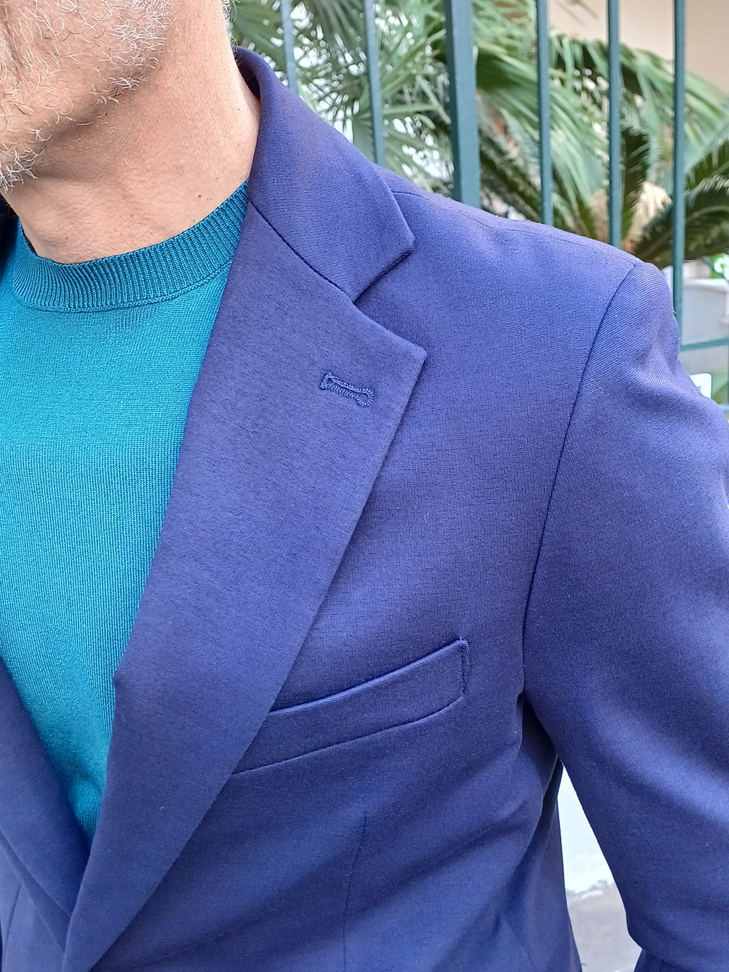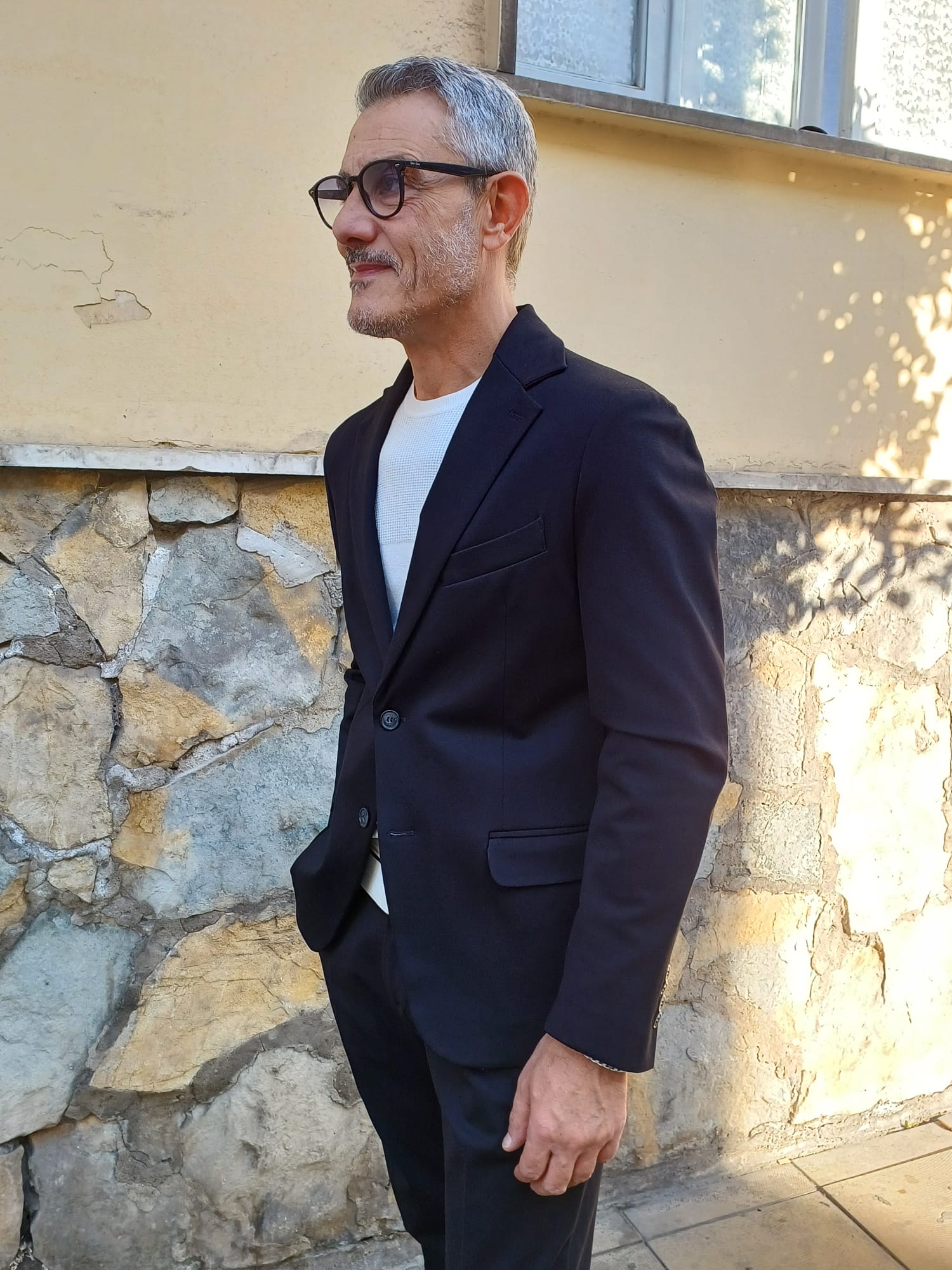 -Grazie al tessuto punto milano la giacca ha una vestibilità morbida e confortevole