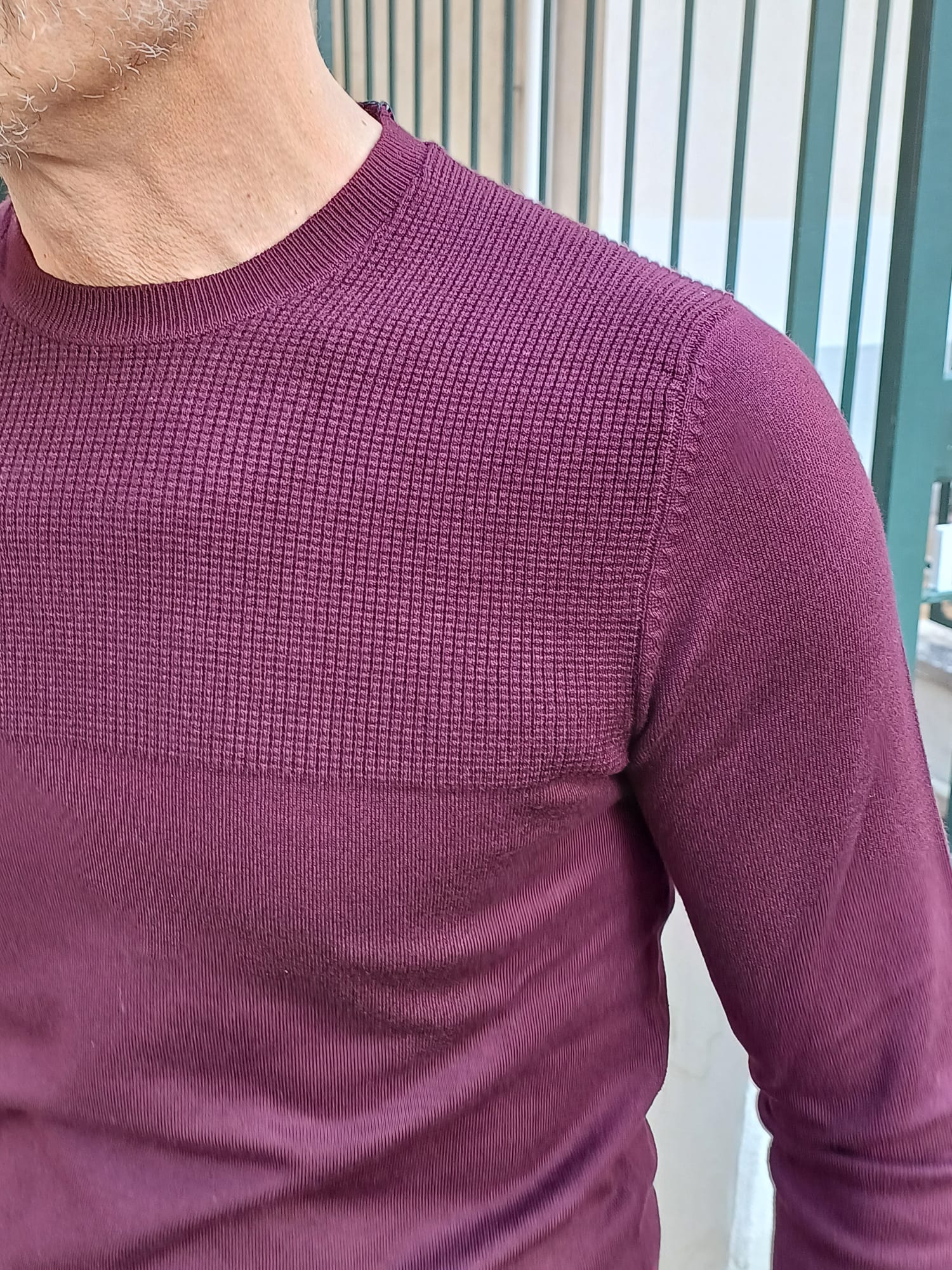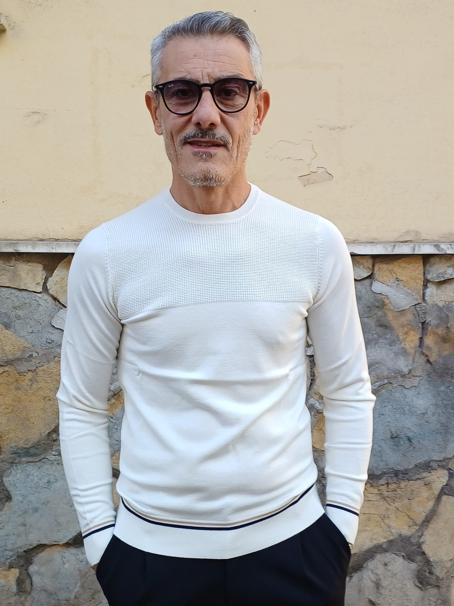 -Maglia girocollo con tecnica a intarsio nella sezione alta