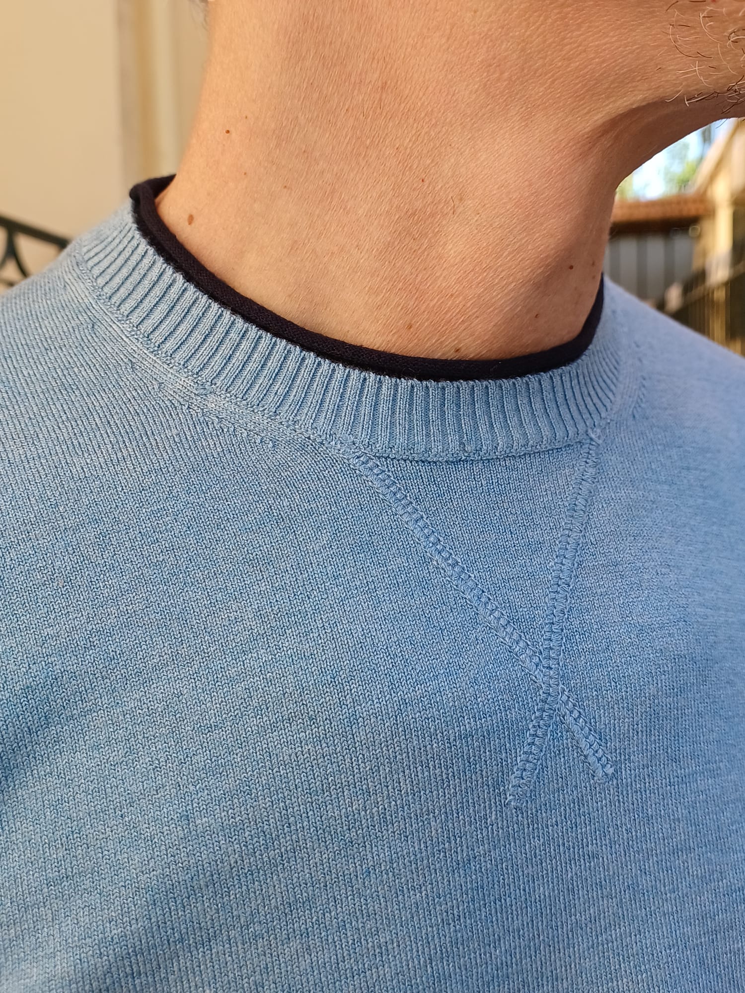 -Maglia girocollo unito, con doppio colletto taglio vivo