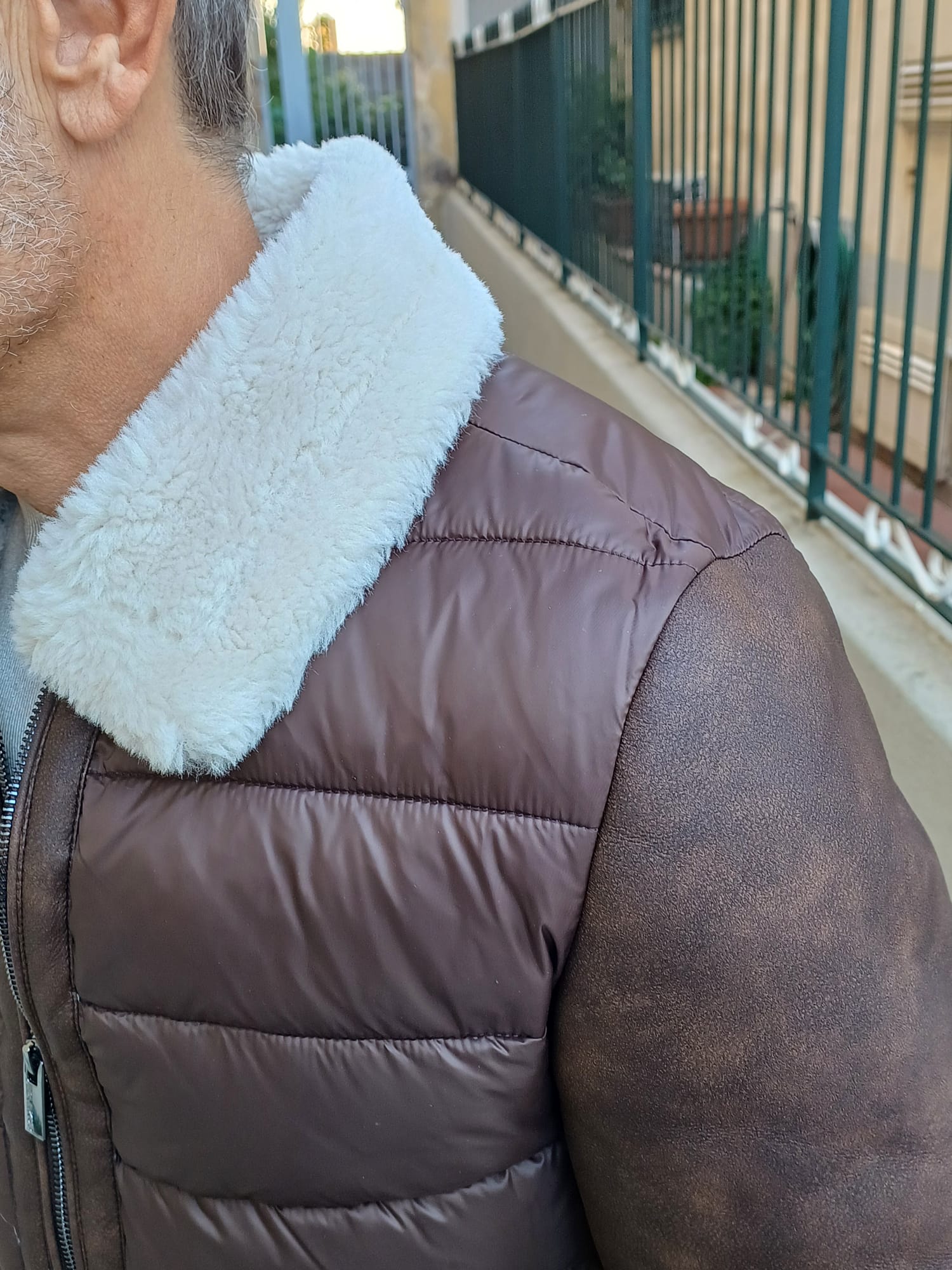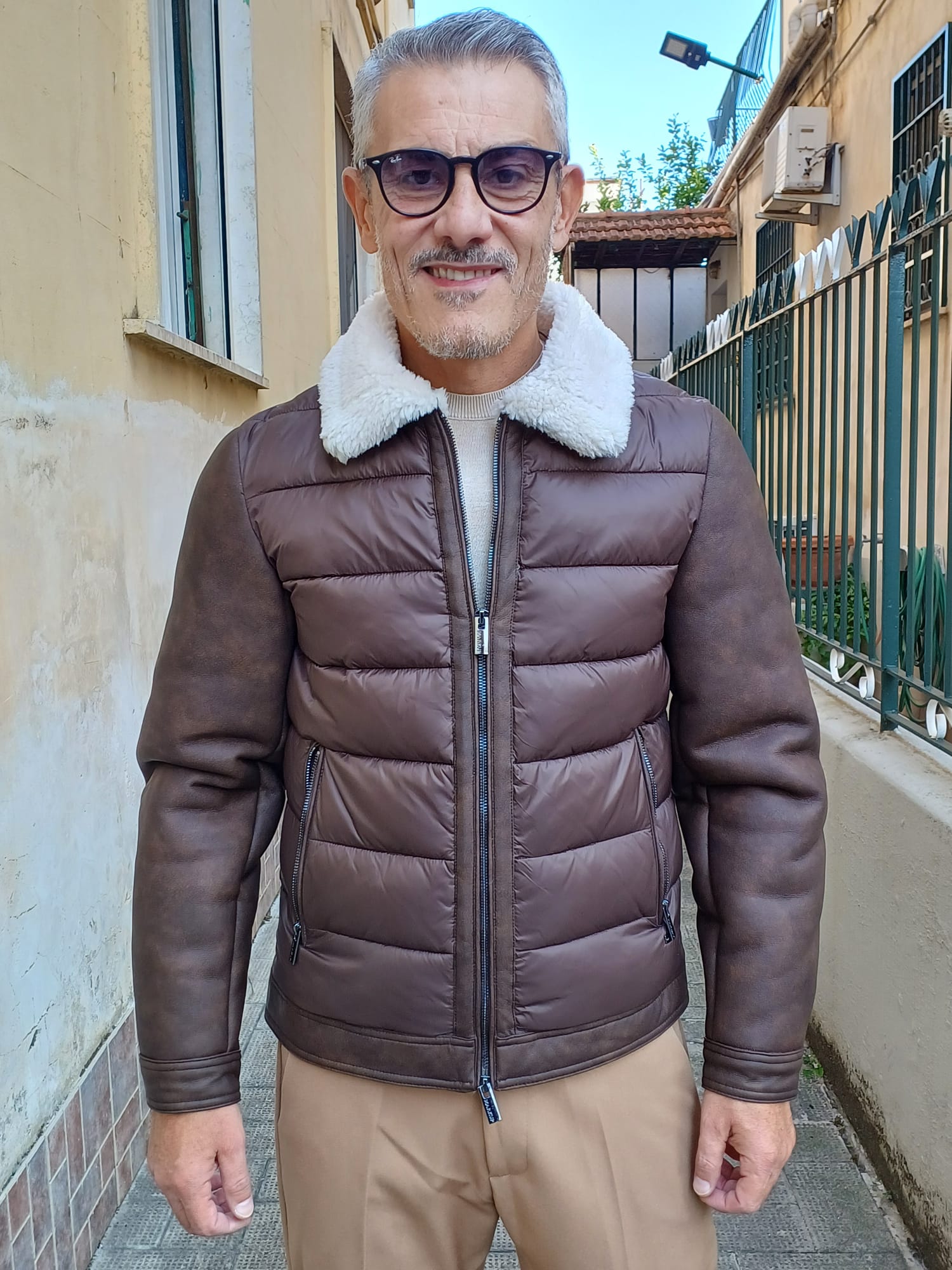 -Giubbino dallo stile aviatore realizzato in tessuto combinato, che unisce praticità e raffinatezza. Il corpo è imbottito in materiale microfibra effetto piumino, mentre le maniche e gli inserti sono in tessuto eco-montone, per un look moderno e sofisticato. Il collo alto con interno in morbida eco-pelliccia garantisce calore e comfort nei giorni più freddi.